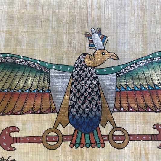 Papyrus Painting - Egyptian Vulture Wings Grey Body Color Printed 12.5 x 4 inch AS IS ATTIC no returns