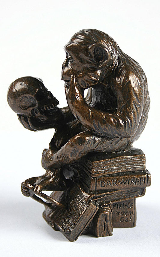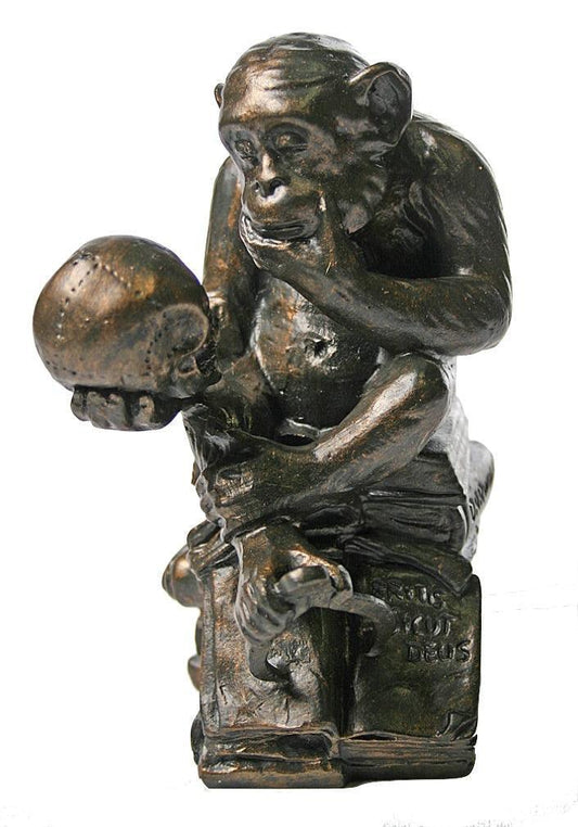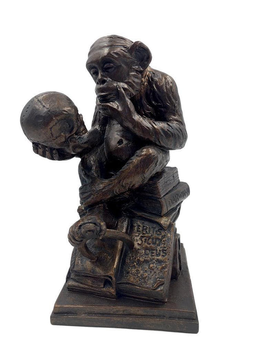 Pocket Art Rheinhold Monkey with Skull Philosophizing Miniature Statue 3.6H