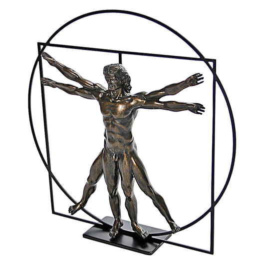 Vitruvian Man Sculpture by Leonardo da Vinci — Renaissance Study Bronze Finish 8.5