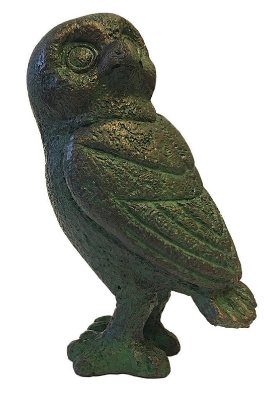 Ancient Greek Owl Head Turned Miniature Statue Figurine 3.5H
