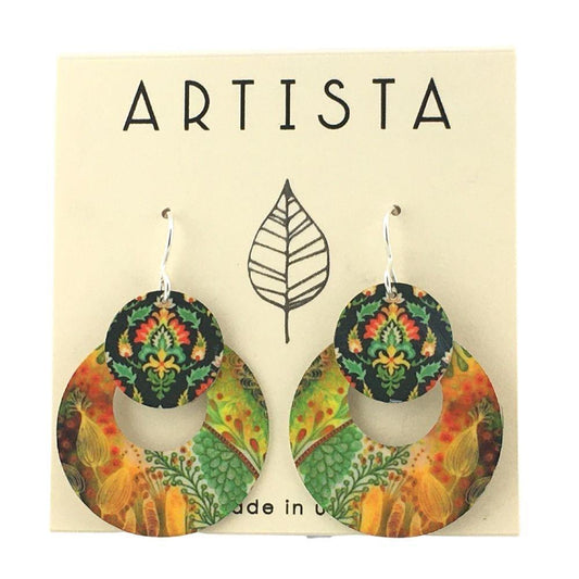 Fall Color Patterns on Two Circle Drops Handmade Artisan Earrings 1.75L