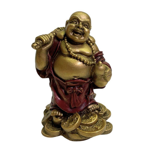 Mini Figurine - Hotai Laughing on Coins Gold and Red Miniature 3.5H