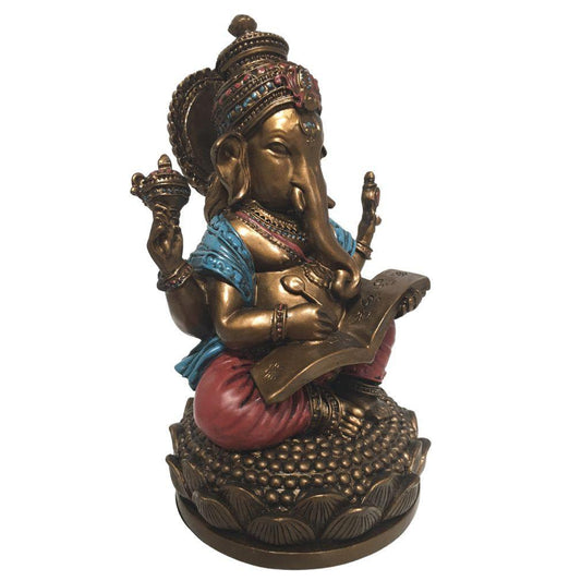 Ganesh Writing the Mahabharata Hindu Statue Bronze Finish 6.75H