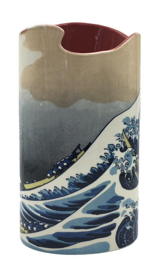 Hokusai Great Wave Off Kanagawa Japanese Ceramic Flower Vase 8.6H