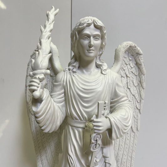 White Resin Angel Statue – Archangel Uriel with Flame and Keys Large attic new no returns