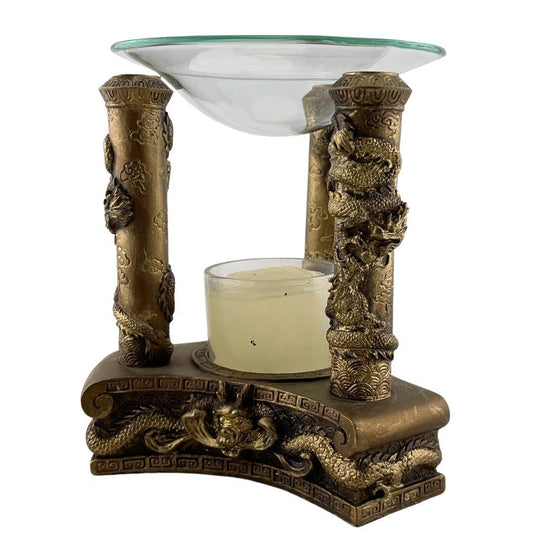 Chinese Dragons Aroma Burner with Glass Tealight Holder – Bronze & Gold Finish new attic