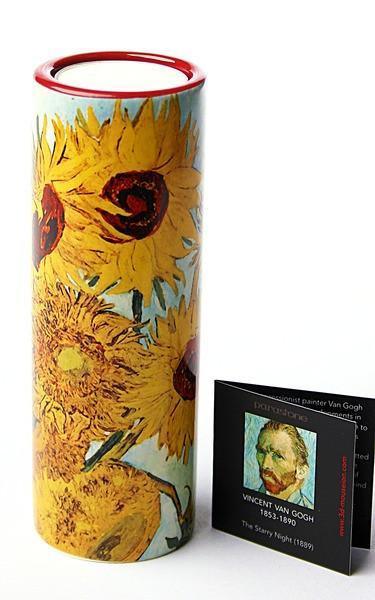 Van Gogh Sunflowers Ceramic Tealight Column Yellow Orange Candleholder 5.75H