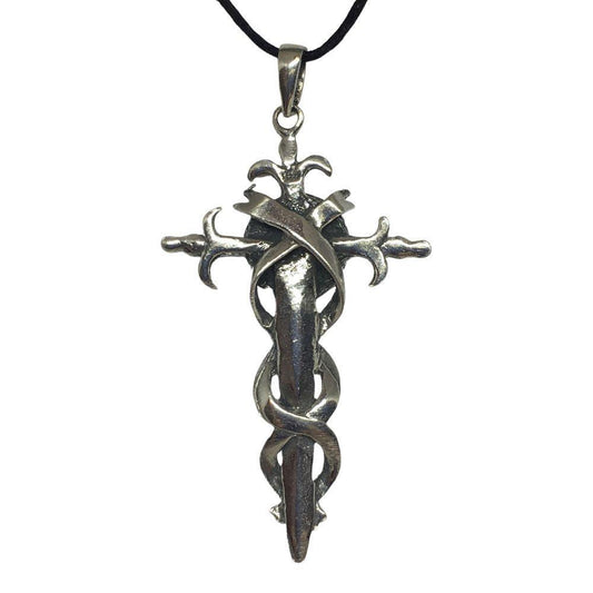 Pentacle of Sword Wiccan Sorcery Unisex Pewter Pendant Necklace 2.5L