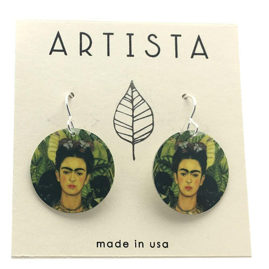 Frida Kahlo Portrait Round Handmade Aluminum Artisan Earrings 1.25L