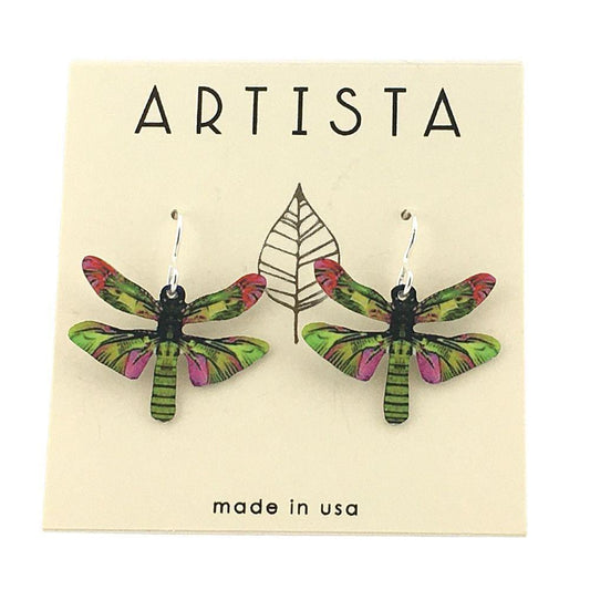 Dragonfly Shaped Green Handmade Artisan Earrings 1.25L