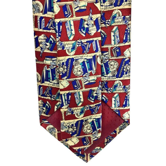 Neck Tie - Books on Shelf Pattern Gift for Librarian Teacher Red White Blue Mens NEW attic