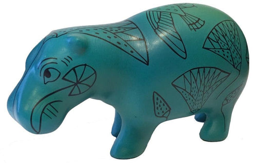 Pocket Art Egyptian Hippo Blue Papyrus Drawings Miniature Statue 4L