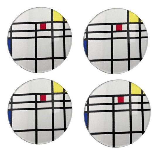 Mondrian Abstract Art Museum Drink Coasters – Primary Color Set of 4
