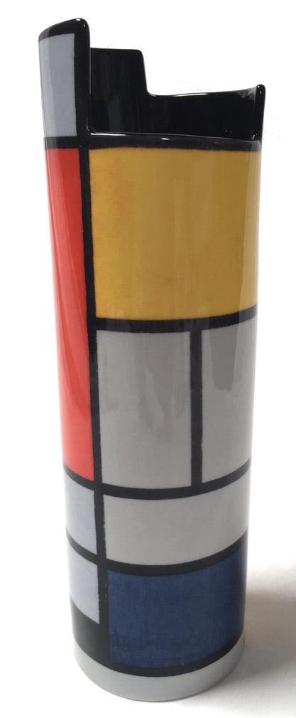 Mondrian Red Blue Yellow Modern Art Ceramic Flower Vase 9.75H