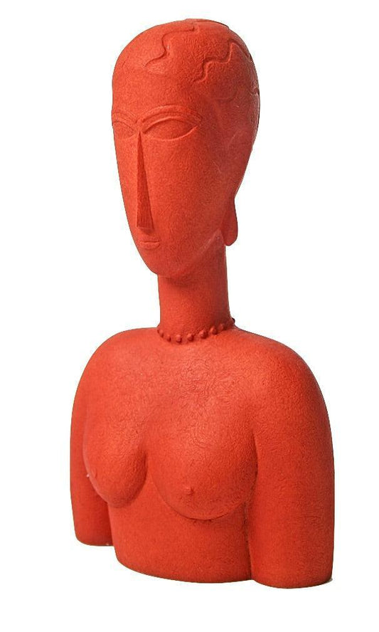 Modigliani Red Woman with Curvy Elongated Features Shows Oceanic Influence Statue 6.75H