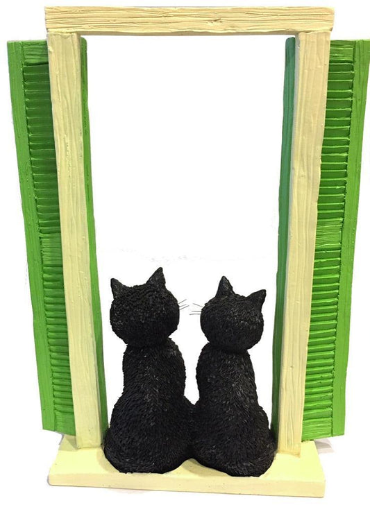 Two Cats Sitting in Window with Green Shutters On the Watch Figurine by Dubout