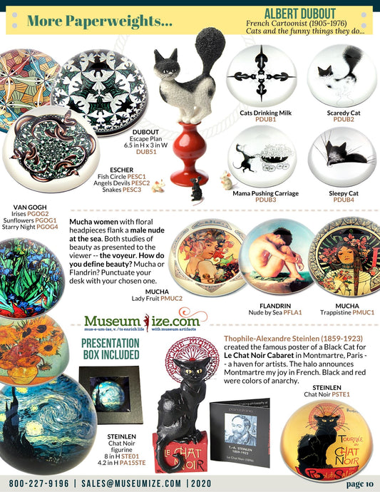 Our collection of Museum Paperweights celebrate history and famous artwork. We offer glass dome paperweights with famous art paintings by Parastone. Do you like Klimt The Kiss, Escher Tessellation or Bosch Tree Man? These designs are available as beautiful ornaments. They make wonderful corporate gifts. Show off you favorite museum paintings in a small scale replica for your desk.
