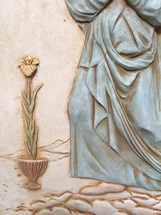Gabriel Angel Wall Relief with Blue Details, 13-Inch Decorative Wall Art