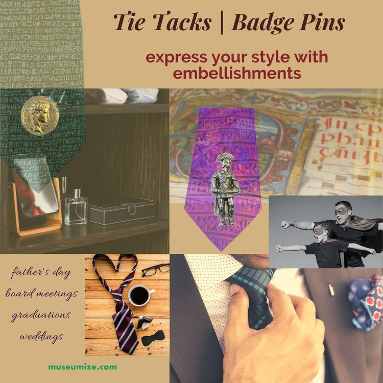 Men’s neckties are a classic statement of character, but it’s the tie tack that adds the finishing flourish to a truly distinguished look. Our selection of museum-inspired tie tacks brings a touch of history, art, and intellect to any outfit, making your man look worldly and refined.