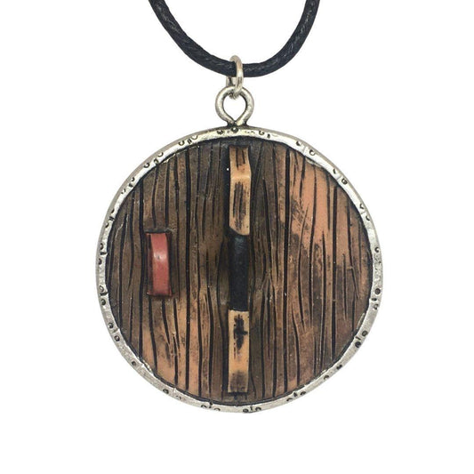 Viking Shield Red White Round Historical Costume Pendant Necklace