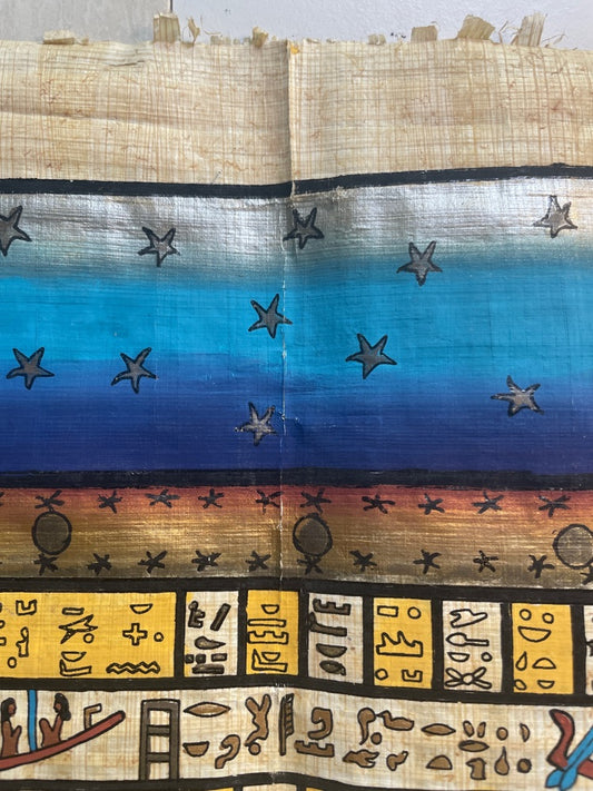 Papyrus Painting - Egyptian Sky Goddess Nut Blue Protecting People Color Printed 24 x 16 inch AS IS ATTIC no returns
