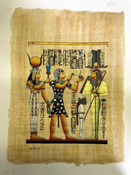 Papyrus Painting Assorted - Egyptian Scene Gods Color Printed 13.5 x 6.5 inch AS IS ATTIC no returns