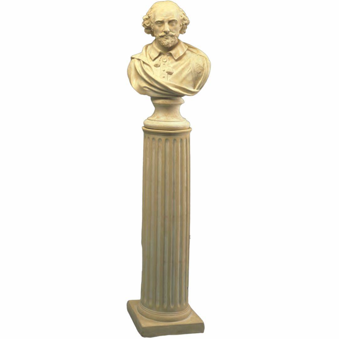 This Classical Column evokes ancient times with is simplicity. The ridges around the column surface are called fluting. The bottom has a round bulge before a square base. Without a capital top, this column fits in with any home decor design intended to evoke an old world flair. Pictured with a bust of Shakespeare (sold separately). (PN 8482)