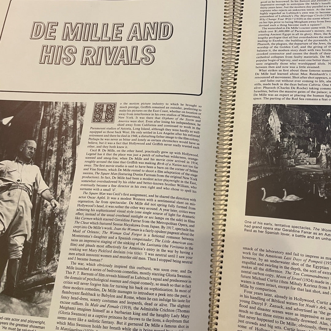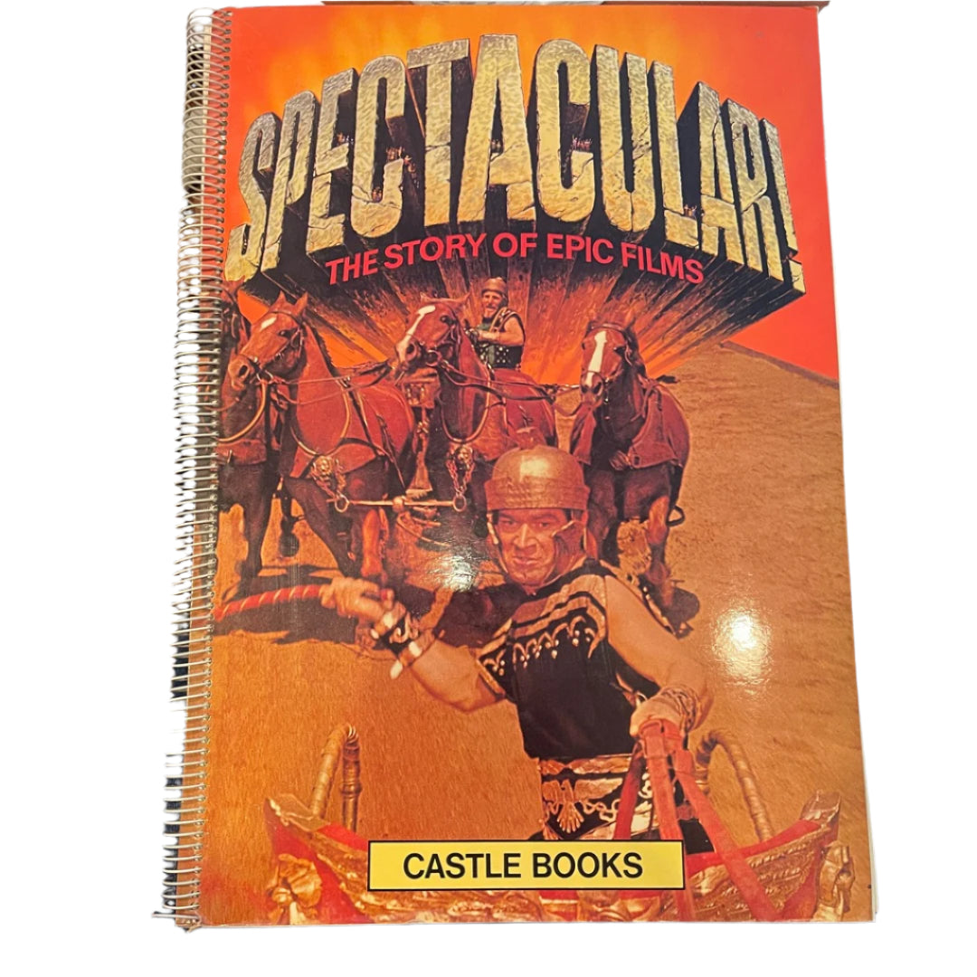 Spectacular!: The Story of Epic Films by John Cary (edited by John Kobal) is a lavishly illustrated, oversized spiral-bound volume (circa 1974, published by Castle/Hamlyn), spanning approximately 160 pages. It's a celebration of the epic film genre, covering grand-scale productions from antiquity to mid-20th-century blockbusters. Measures roughly 14 x 17 inches.