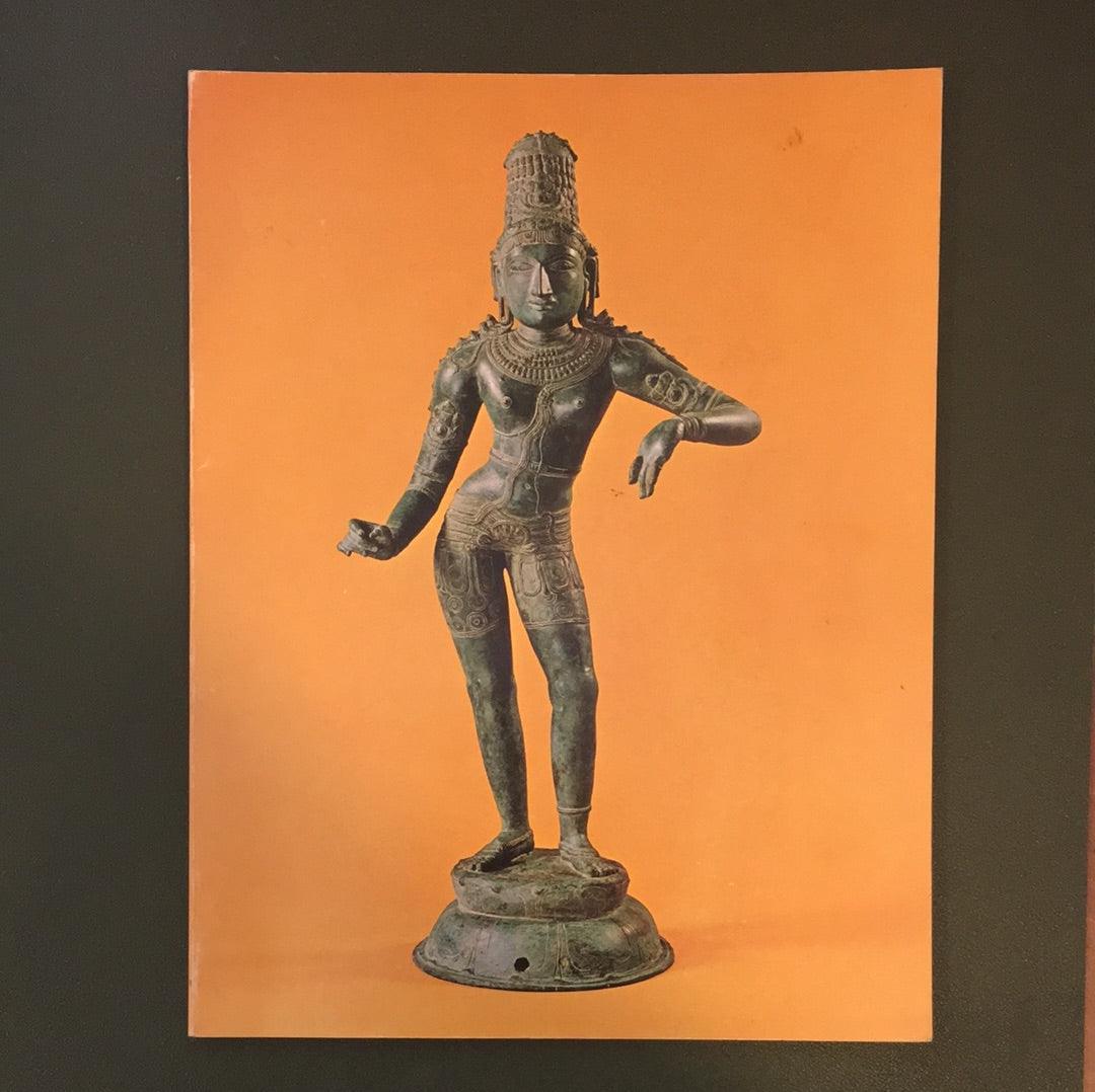 This soft back book is a scholarly monograph about the Krishna bronzes in the Los Angeles Country Museum of Art. The introduction describes: "this monograph is primarily concerned with a group of four Chola bronzes representing Krishna, his two consorts Rukmini and Satyabhama, and his winged attendant mount Garuda." The book considers the iconography and style in a somewhat wider context.
