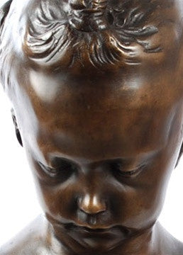 French Girl Bust, Lost Wax Bronze is made from bronze metal according to centuries old casting methods. Black marble base. Measures: 17 in H x 8 in W x 6 in D.