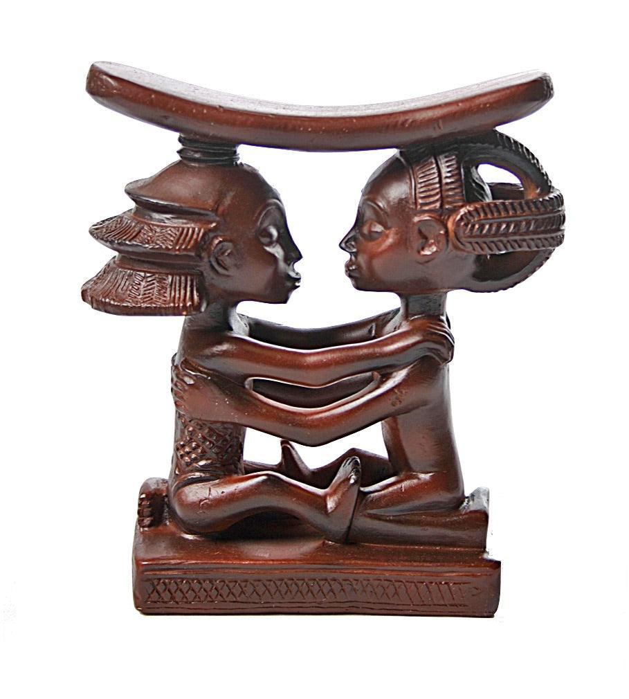 - Reproduction of African Luba Headrest is made from resin with a wood finish.