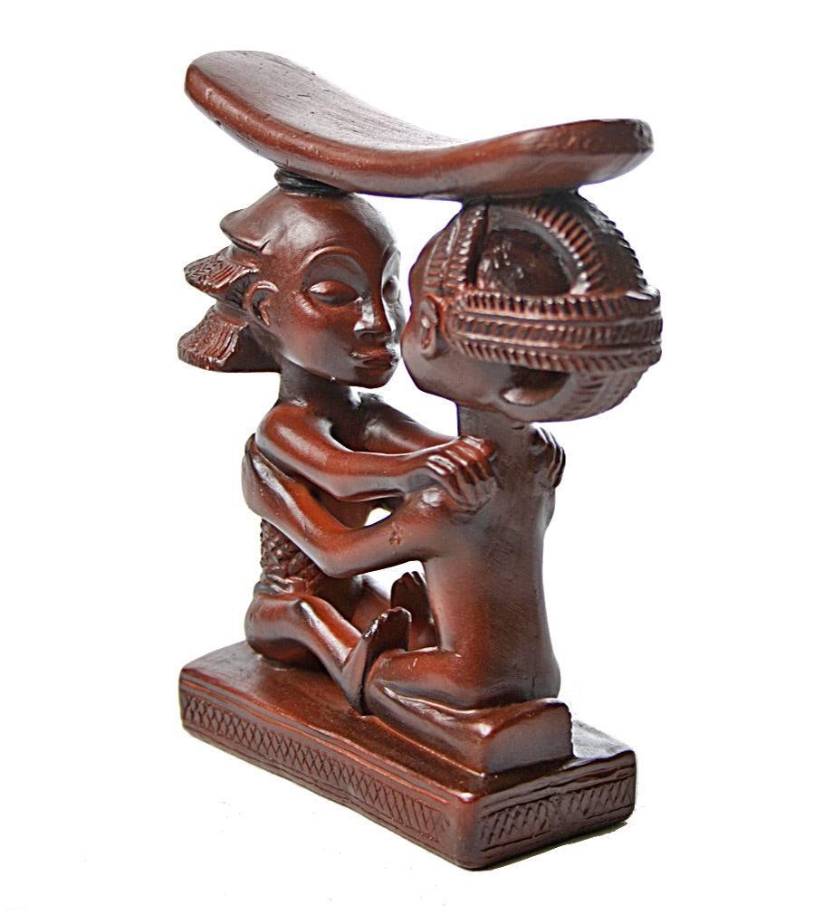 Luba Couple West African Congo Wedding Headrest Statue Man Woman 5.25H