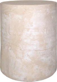 Medium Round Drum Pedestal Column Display is made from reinforced plaster, measures 18"H x 13 3/4" diameter. Weight: 22 lbs. Recommended Glass Size: One holds 24" to 30" square or round, 1/2" to 3/4" thick. PN 8491.
