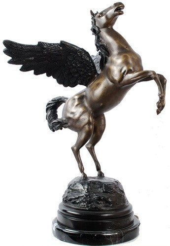 Let your imagination take flight with this beautiful bronze statue of Pegasus. Pegasus is the mythical winged horse found in Greek mythology and the son of Poseidon and Medusa. Zeus transformed Pegasus into the constellation in the night sky we all know today.