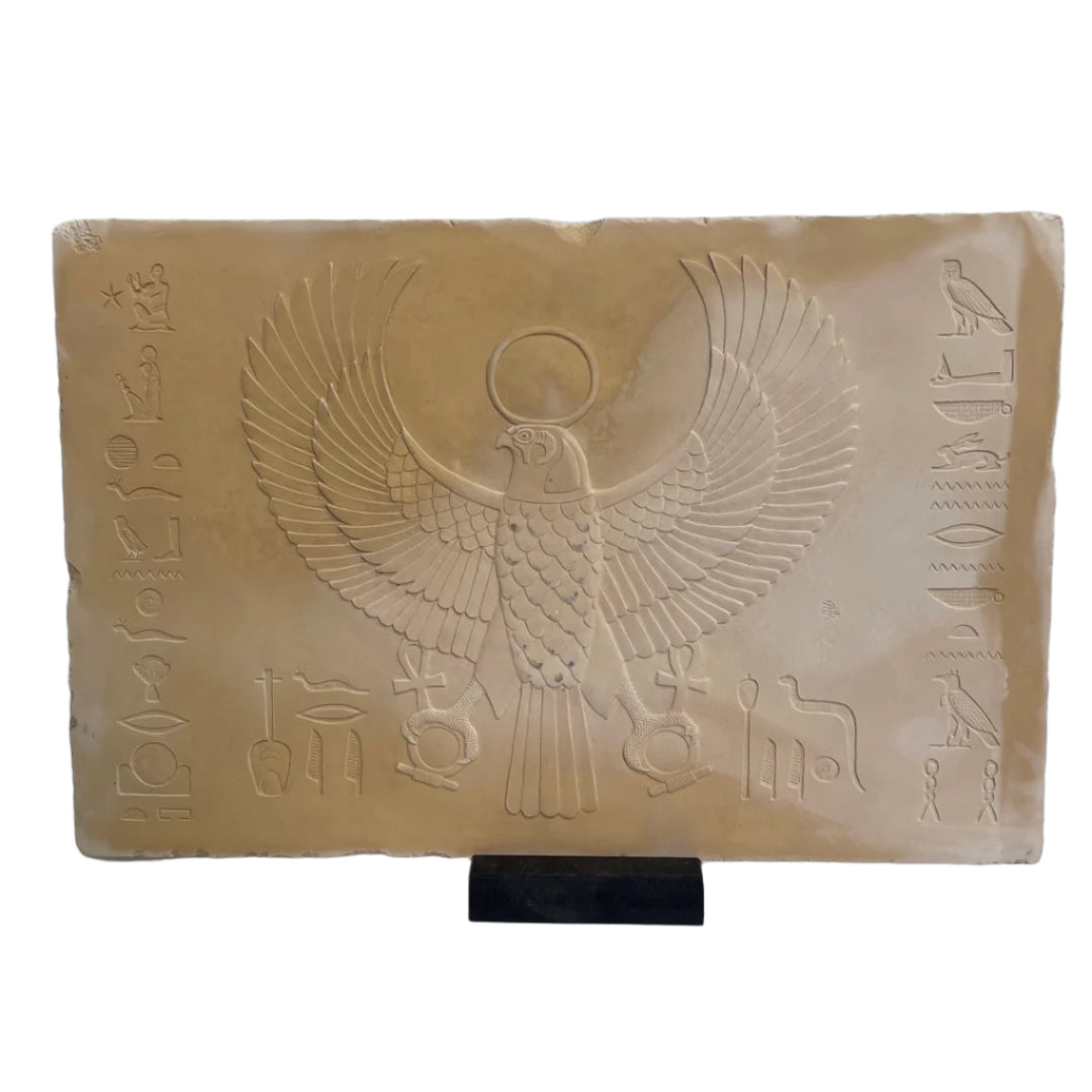 This wall relief illustrates the Egyptian God Horus as Falcon Taking Flight Rising. It is a production sample. If you like to paint models, this is a good casting as a starting point.